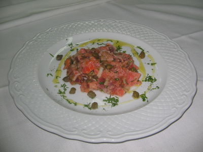De la abundancia de tomates cultivados en sus terrenos y la extensa pesca en sus costas, se prepara la ensalada de ahumados, acompañada de cebolla, pimiento y aceitunas de cuquillo, dando lugar a una receta que puede ser servida tanto como entrante como guarnición de pescados a la sal o al horno.