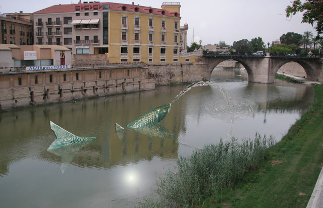 La escultura en bronce de la sardina emergiendo del río será el emblema de una de las tradiciones más queridas en Murcia, el ''Entierro de la Sardina''.