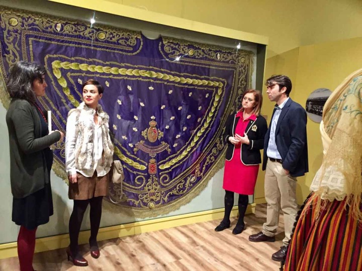 La directora detalló que “se muestran piezas muy variadas como utensilios, mobiliario antiguo y documentos, así como numerosas telas y prendas de vestir, entre las que destaca el manto morado de raso bordado en seda de la Virgen de la Fuensanta (1928-1929) que se custodia en la Catedral de Murcia”.