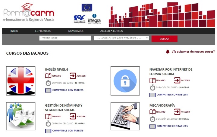 Actualmente, Form@carm cuenta con 97.000 usuarios registrados, que tienen a su disposición un total de 125 cursos en áreas como ofimática, idiomas, diseño y programación, habilidades, emprendimiento, empresa digital o contabilidad. El número de usuarios ha experimentado un crecimiento progresivo con respecto al pasado año.