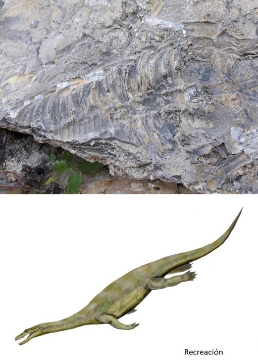A la espera de un estudio más detallado, todo apunta a que se trata de un ejemplar de sauropterigio (un grupo diferente a los dinosaurios) atribuido al Muschelkalk, un periodo de tiempo geológico ubicado dentro del Triásico. Fue descubierto en un bloque de roca caliza negra que se encuentra en la tapia del Huerto de la Orden, al norte del casco urbano de Cehegín.