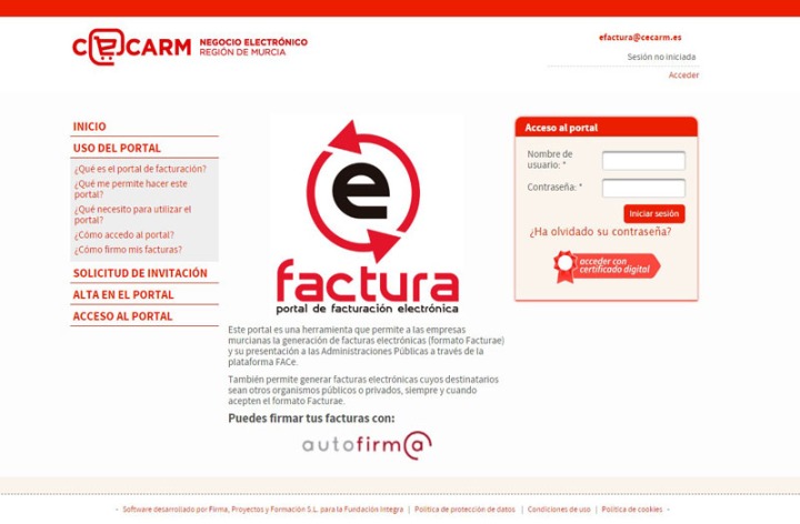 El portal de la Comunidad eFactura (http://facturae.cecarm.es) registra ya 4.000 facturas electrónicas que cumplen con todos los requisitos legales y han sido remitidas a la Administración regional y a los ayuntamientos.