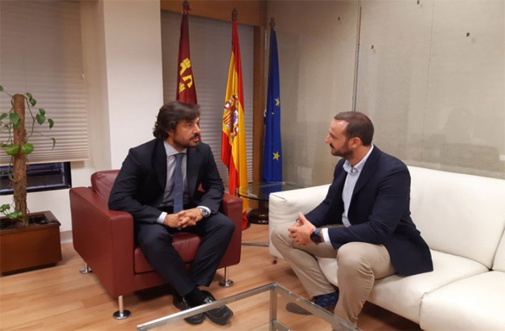El consejero de Empleo, Investigación y Universidades, Miguel Motas, mantuvo hoy un encuentro con el presidente de AJE, Ginés García López, y destacó la importancia de “ofrecer todos los recursos posibles a los jóvenes interesados en iniciar su propio negocio, no sólo en forma de subvenciones, sino también con este tipo de programas formativos y de asesoramiento pormenorizado”.