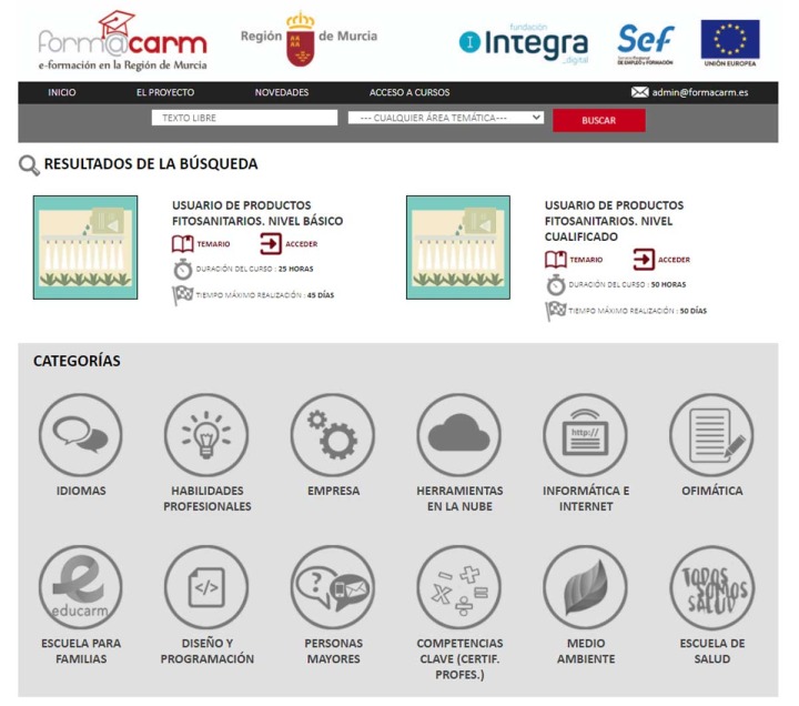 La Comunidad Autónoma ha lanzado su primer curso ‘online’ gratuito de usuario profesional de productos fitosanitarios nivel cualificado, que ya está disponible a través del portal formativo Formacarm (www.formacarm.es). El curso ha sido financiado y desarrollado por el Servicio Regional de Empleo y Formación (SEF), en colaboración con la Consejería de Agua, Agricultura, Ganadería y Pesca.