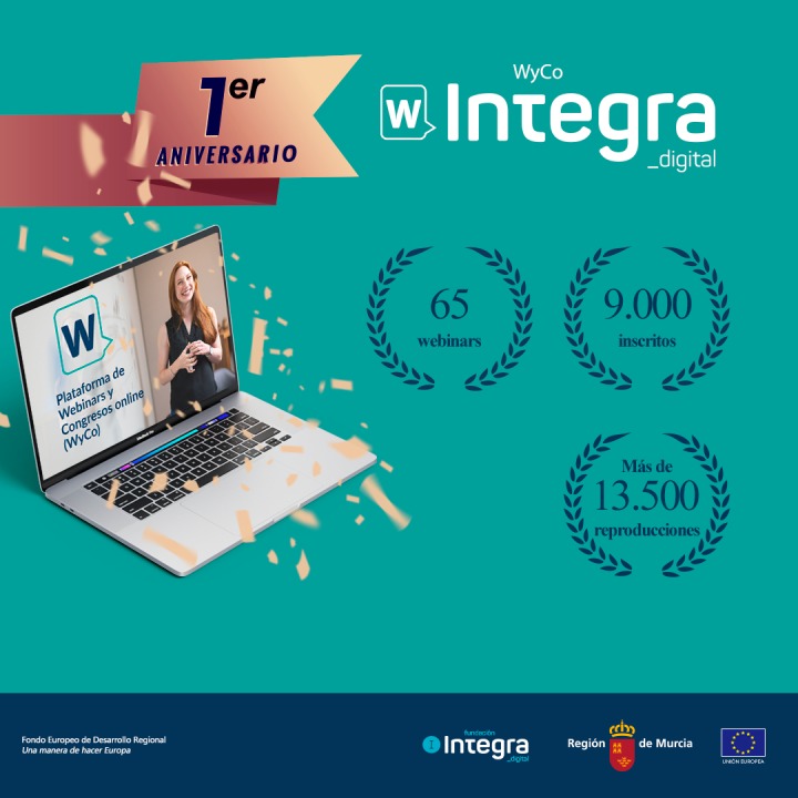 ‘Wyco’, la plataforma de webinars y congresos online puesta en marcha por la Consejería de Economía, Hacienda y Administración Digital, a través de la Fundación Integra, cumple un año, periodo durante el cual se han celebrado 65 eventos, que han contado con 9.000 personas inscritas.