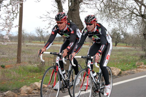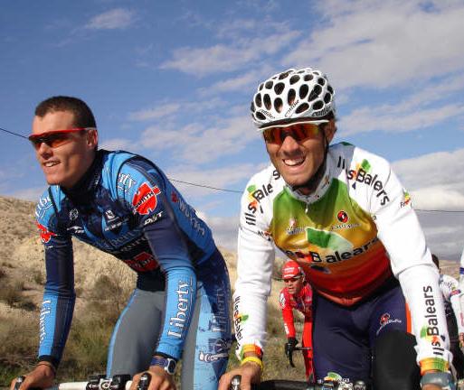 Luis León Sánchez y Alejandro Valverde durante un entrenamiento en Mallorca en febrero de 2007