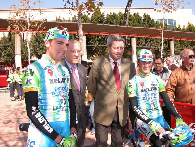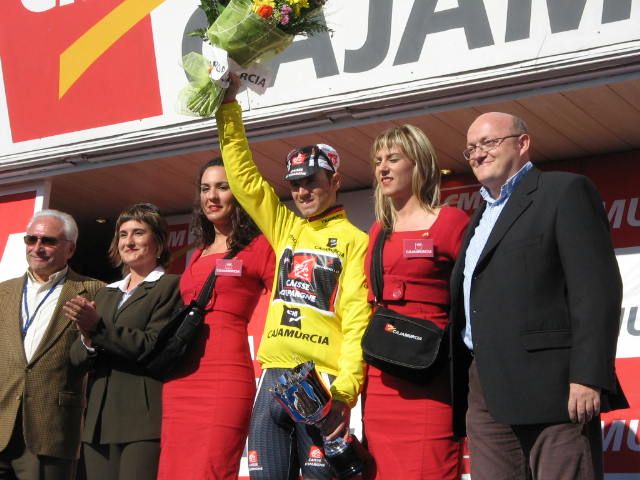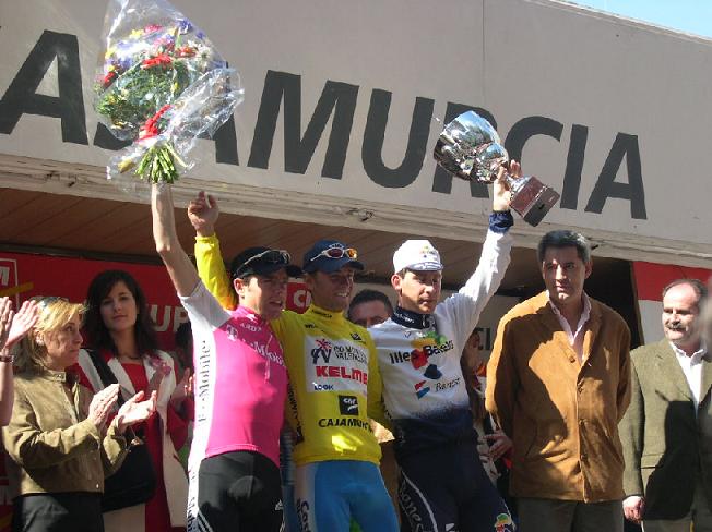 Junto a Cadel Evans y José Iván Gutierrez en el podium final de la Vuelta a Murcia 2004