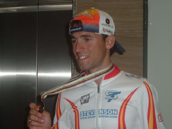Alejandro Valverde durante una entrevista en los Mundiales de Madrid 2005
