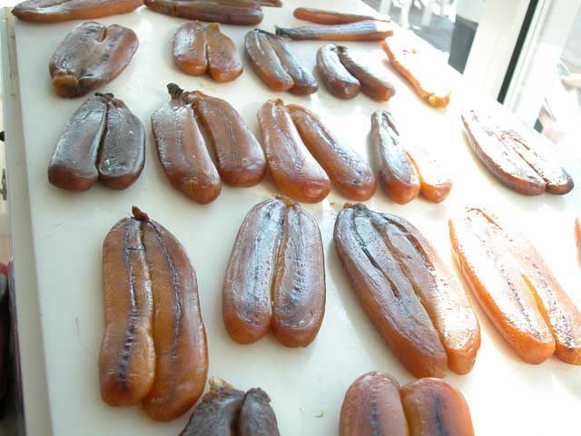 La hueva de maruca, que se importa de Noruega, tiene que pesar más de doscientos gramos, son extraídas del pescado y congeladas en los barcos factoría noruegos, para que conserven todas sus cualidades optimas. La época de su captura es de mayo a julio. La mejor temporada para obtener el atún es a partir de septiembre. Además, hay que tener en cuenta que el atún pequeño lo utilizan las empresas conserveras y el grande, con más de sesenta kilos, las de salazones.