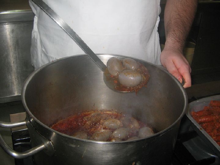 La carne, los llamados tropezones que suelen acompañar a estas recetas, tienen como base la matanza del cerdo, una tradición muy antigua en el sureste español.