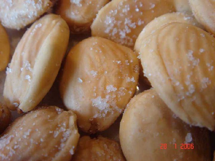 Elaboración: Se cuecen las batatas con piel y se pelan cuando todavía estén calientes. Se chafan bien y se le mezcla el azúcar, la almendra, la raspadura de lima, las yemas y un poco de vainilla en polvo. Se deja enfriar la masa y cuando endurezca se hacen las bolitas rebozadas en azúcar.