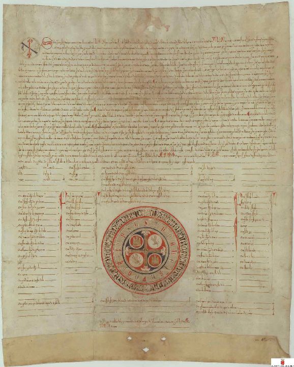 Comentario:Es el primer Privilegio Rodado que se conserva del rey Alfonso X, de los otorgados a la ciudad de Murcia. Mediante este documento el rey concede carta de naturaleza al concejo murciano, disponiendo el nombramiento de los principales oficiales del concejo: alcaldes o jueces, alguaciles, escribano, almotacén, les otorga además, la enseña concejil y el sello para dar validez a sus documentos y estableciendo franquicias, derechos y libertades para sus vecinos.