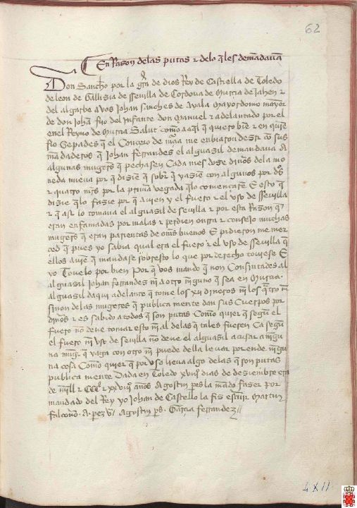 Copia.En Cartulario Real.102 fols.Papel.[285x205 mm].Sig. Serie 3, n. 1, fol. 62-63