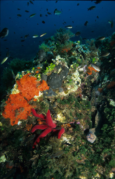 Entre las especies marinas se establecen relaciones de muy diferente índole, algunas de las cuales, las intraespecíficas, se dan entre animales y plantas de la misma especie (formación de colonias, gregarismo, etc.), mientras que otras, las interespecíficas, se dan entre animales y plantas de especies diferentes (depredación, simbiosis, mutualismo, comensalismo, parasitismo, competencia por el espacio, epibiosis, etc.). En todos los casos se tratan de relaciones ecológicas basadas siempre en el interés evolutivo de la especie.