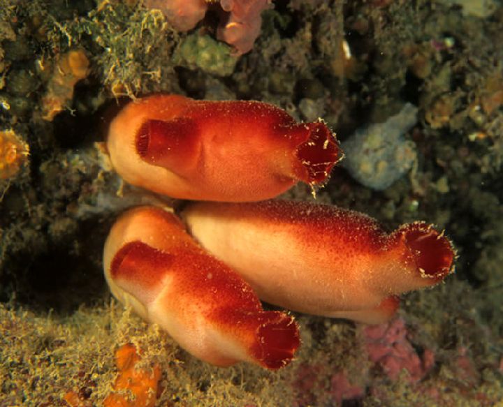El ejemplo más claro de esta relación se observa en las especies bentónicas (ciertas esponjas, ascidias, etc.) que tienen una coloración intensa en la parte del cuerpo que recibe más luz, mientras que la que menos luz recibe es bastante más clara o incluso blanquecina (figura 1). La coloración intensa es consecuencia de una presencia importante de algas simbiontes, mientras que coloraciones más claras reflejan una disminución de dicha presencia. Una coloración blanquecina, que es la que presentan estas especies en las cuevas, indica que las algas no pueden sobrevivir por falta de luz (figura 2).