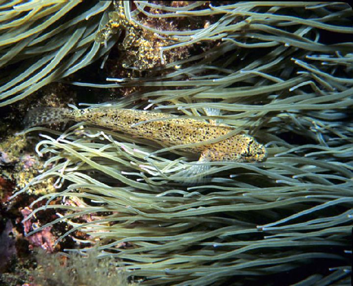 La anémona Anemonia sulcata y el pez Gobius bucchichi también entablan una relación de mutualismo (figura 3). El pez encuentra protección ante sus depredadores al esconderse entre los tentáculos de la anémona, mientras que ésta obtiene restos de la comida del pez, a la vez que los movimientos de éste entre sus tentáculos crean corrientes que la limpian de sedimentos y renuevan el agua que la envuelve.
