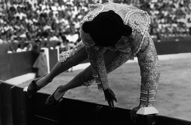Un subalterno salta la barrera tras poner banderillas