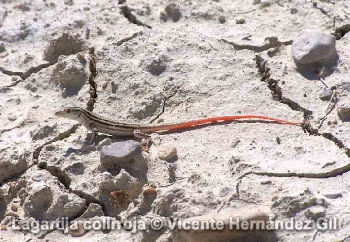 Normalmente, a la Lagartija Colirroja se le asocia a sustratos blandos, deleznables, como son los arenales costeros, saladares, terrenos margosos, y lechos de ramblas, pero también aparece en áreas de suelo más compacto de matorral, y pinares abiertos del interior de nuestra región. Puede verse a esta especie en prácticamente toda la Región de Murcia, salvo las zonas más boscosas, de montaña, del Noroeste.