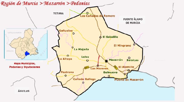 Al Noroeste de Mazarrón, a 9 km de distancia. Limita al O con el municipio de Lorca, al norte con la pedanía de Gañuelas y al Sur con la de la Atalaya.