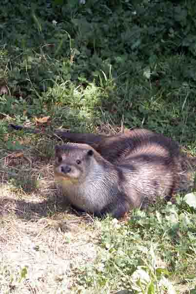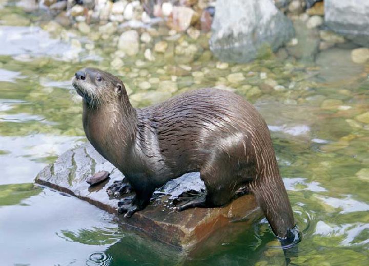 El cuerpo de la nutria es grande, esbelto y ligeramente aplanado. Mide entre 59 y 85 cm, a lo que hay que añadir la cola, que es ancha en la base y afilada en el extremo. Tiene unas patas cortas y entre sus dedos existe una membrana interdigital (especie de tejido que une los dedos) que ocupa toda su longitud.