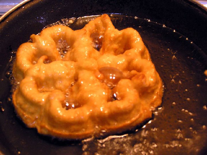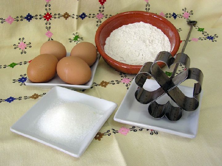 En el aceite hirviendo se deposita el molde y se agita un poco mientras la masa fríe para que esta se despegue. La fritura de esta masa es muy rápida, hay que tener cuidado que no se queme.