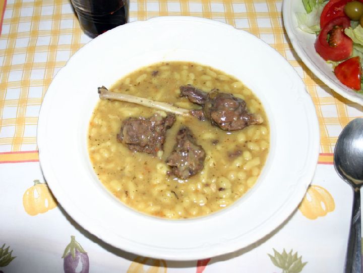 Este plato destaca por su sabor intenso y aroma a tomillo así como por los gurullos que aún hoy día, en muchas casas lorquinas, gustan de preparar artesanalmente.