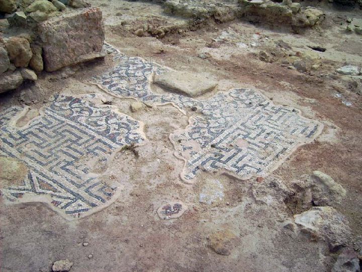 Hasta el momento son cuatro las habitaciones cuyos mosaicos presentan buen estado de conservación. Todos tienen características similares; se trata de opus tesselatum, es decir, mosaicos polícromos en los que se utilizan tesselas (pequeños fragmentos de mármol) de cinco colores diferentes: blanco, rojo, naranja, negro y amarillo. Los motivos decorativos son geométricos, destacando la ausencia de representaciones antropomorfas o animales. Destacan los nudos salomónicos, grecas y esvásticas, enmarcados en grandes frisos. Los mosaicos corresponden a una de las últimas fases de ocupación de la villa; la técnica y los motivos representados fechan los pavimentos en torno al siglo IV d.C.