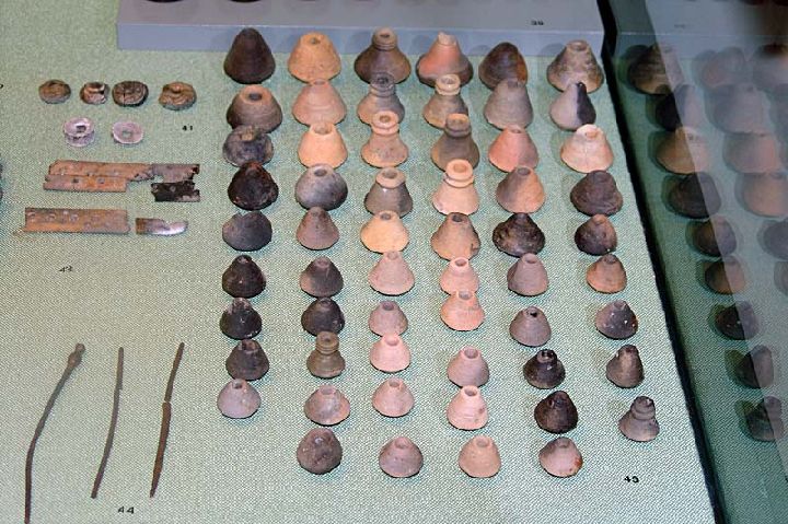 Este dato queda corroborado por los hallazgos arqueológicos, puesto que en sepulturas femeninas es frecuente encontrar útiles empleados en el proceso del hilado como fusayolas o contrapeso del huso. La fusayola permite que el movimiento giratorio del huso sea más uniforme y proporciona un hilo más fino y, por lo tanto, más valioso y apreciado. En ocasiones aparecen también pesas o pondus para la elaboración del tejido en telares y agujas fabricadas en bronce o hierro.