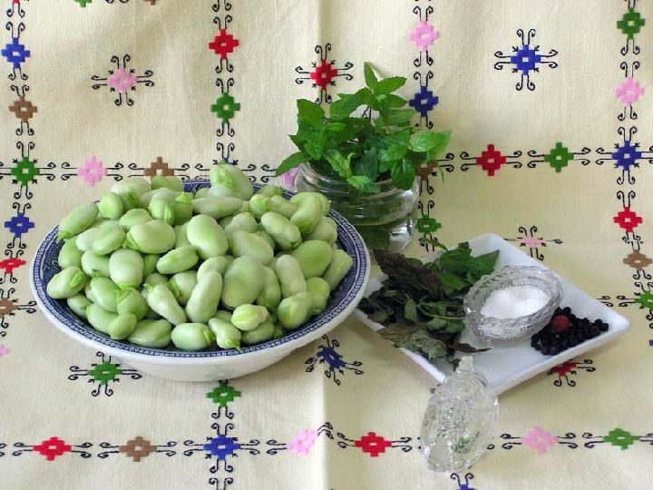 Después de extraer los granos de haba de sus vainas se dejan en una cacerola con agua, se han de echar con el agua fría que, inmediatamente, se pondrá a calentar, junto a la sal y la pimienta o, si se quiere, la guindilla.