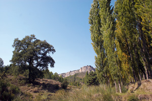 Entre las elevaciones de La Muela de Moratalla y Los Álamos, el río Alhárabe circula por un valle profundo donde abunda la vegetación de ribera.