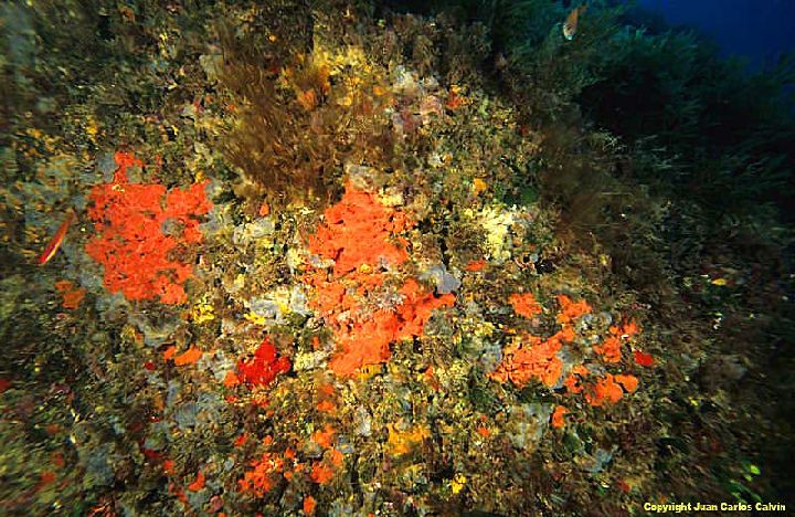Esponjas: Clathrina coriacea, Sycon raphanus, Cliona celata, Chondrosia reniformis, Crambe crambe, Phorbas tenacior, Petrosia ficiformis, Dysidea avara.