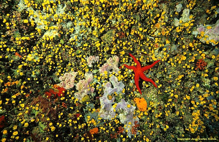 Esponjas: Clathrina clathrus, Oscarella lobularis, Spirastrella cunctatrix, Chondrosia reniformis, Axinella damicornis, Acanthella acuta, Agelas oroides, Phorbas tenacior, Haliclona mediterranea, Haliclona fulva, Petrosia ficiformis, Hexadella racovitzai.
