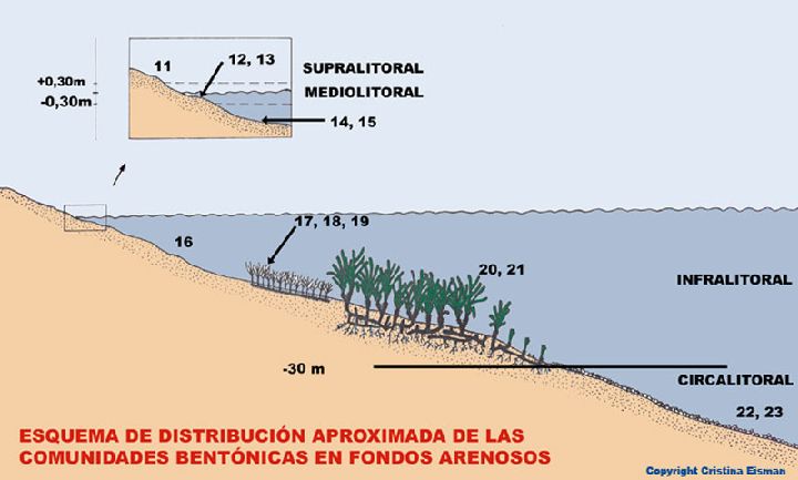 Los fondos móviles donde se implanta ganan en estabilidad por el efecto fijador que tienen los rizomas y raíces de la planta sobre las partículas sueltas del sustrato. Esto permite la instalación de una comunidad más compleja y estructurada que la comunidad de arenas finas bien calibradas (16).