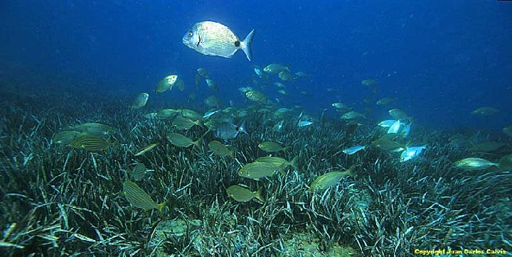 La especie vegetal que da lugar a este paisaje se implanta sobre fondos sedimentarios y fija las partículas móviles de este sustrato con los rizomas y raíces que desarrolla. Este efecto fijador permite que la diversidad de especies y estructuración del espacio aumente muchísimo en relación con los fondos arenosos.