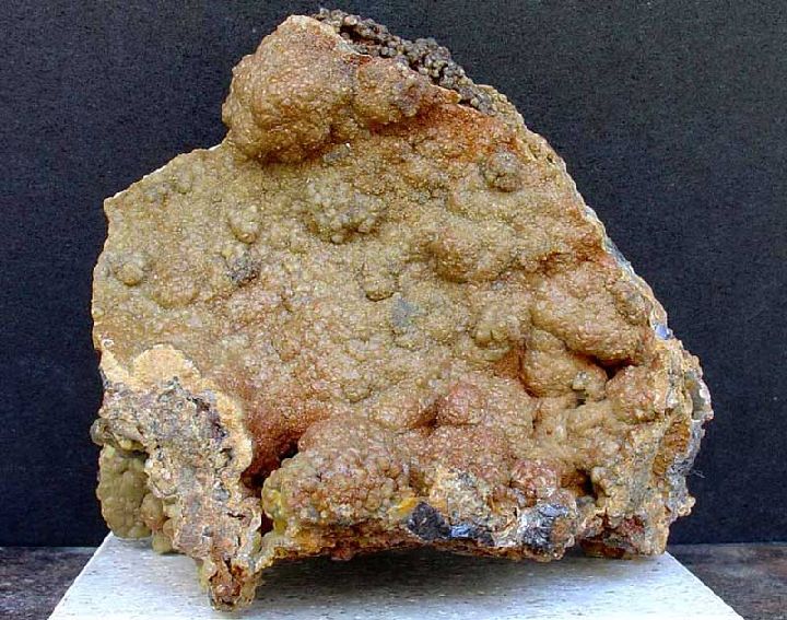 Hábito: Hábito romboédrico, a veces con caras curvas, agregados en roseta de romboedros muy aplastados, concreciones globulares, masivo o estalactítico.