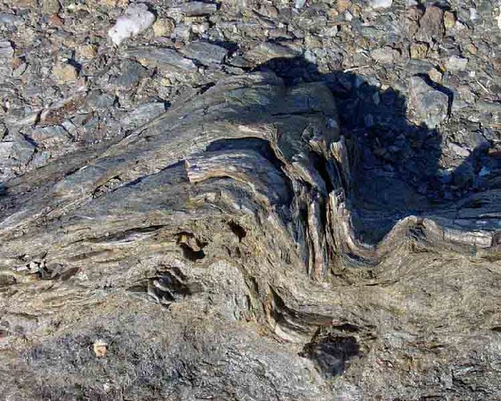 Roca metamórfica con estructura laminar ondulada e irregular (estructura esquistosa), con granos minerales observables a simple vista. Compuesta por moscovita, biotita, clorita, cuarzo, plagioclasa y minerales típicamente metamórficos como: cloritoide, estaurolita, andalucita, distena, granate, sillimanita, etc.