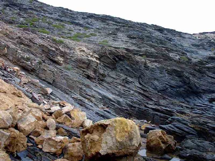 Rocas procedente del metamorfismo regional de grado bajo a medio que ha afectado a rocas pelíticas (lutitas). Se trata pues de antiguos sedimentos arcillo-limosos metamorfizados, de principios del Mesozoico, del Paleozoicos e incluso del Precámbrico.