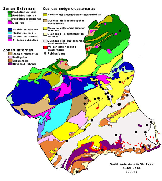 Dentro de esta cordillera se distinguen tres grandes unidades geológicas; dos de ellas en función de su posición con respecto al Mediterráneo; las Zonas Externas y las Zonas Internas (figura 2), que durante el Mesozoico y parte del Cenozoico pertenecieron a dos microplacas tectónicas diferentes; Ibérica y Mesomediterránea, respectivamente. La tercera compuesta por rocas, de edades relativamente recientes, que se depositaron sobre los materiales anteriores (figura 3).