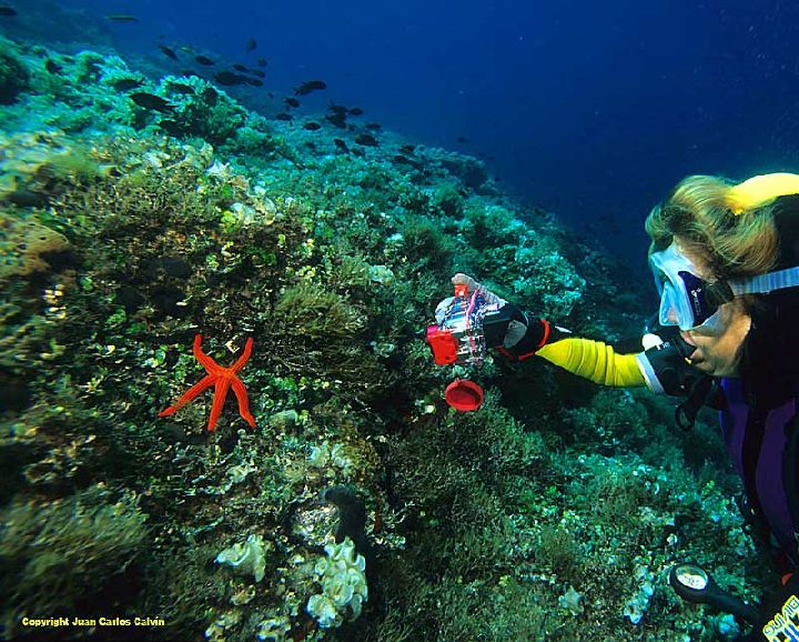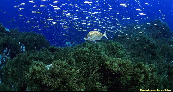La gran transparencia de las aguas en nuestro litoral hace que este paisaje pueda sobrepasar los 26-27 m de profundidad.