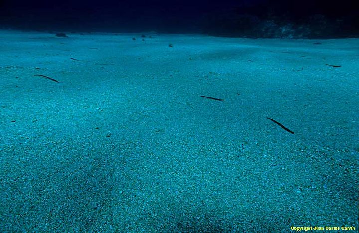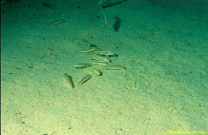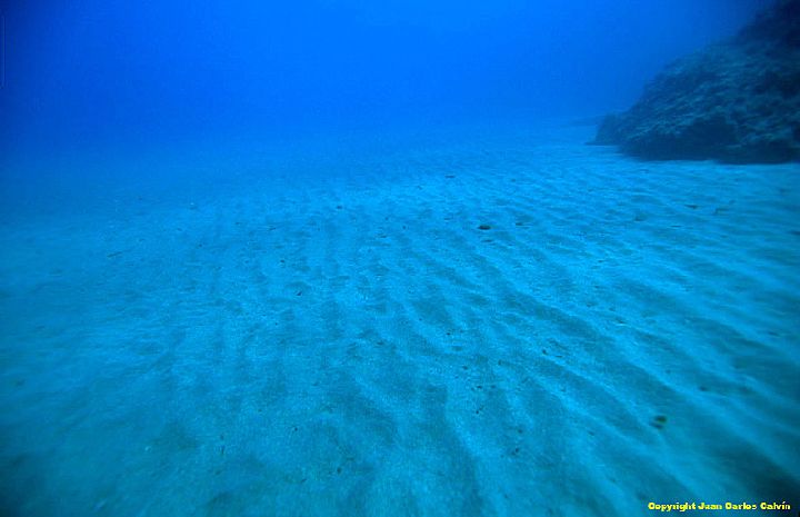 Existe una ausencia total de algas y fanerógamas marinas y algunas de las especies animales propias de la biocenosis son: