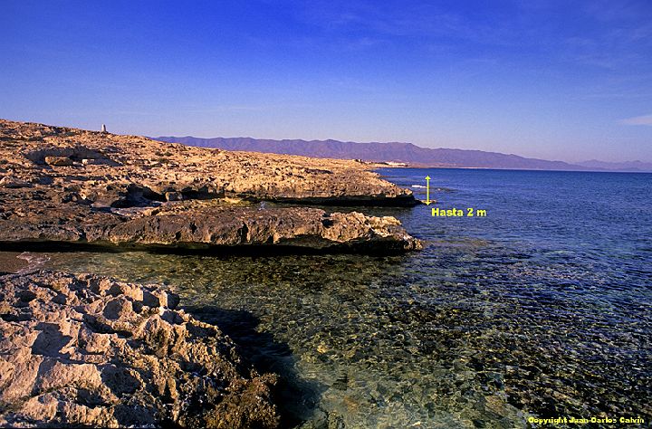 Costa rocosa baja: en ella la altura del acantilado está comprendida entre 0.5 y 2 m (figura 3).