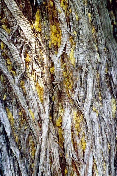 Pequeño árbol de 6-7 m de altura (puede llegar a 15 m). Fuste recto y corteza grisácea, delgada, desprendiéndose en placas y tiras. Copa piramidal. Ramas patentes, más o menos péndulas en la parte apical.