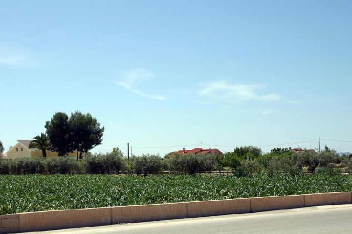Plantación de alcachofas y olivos