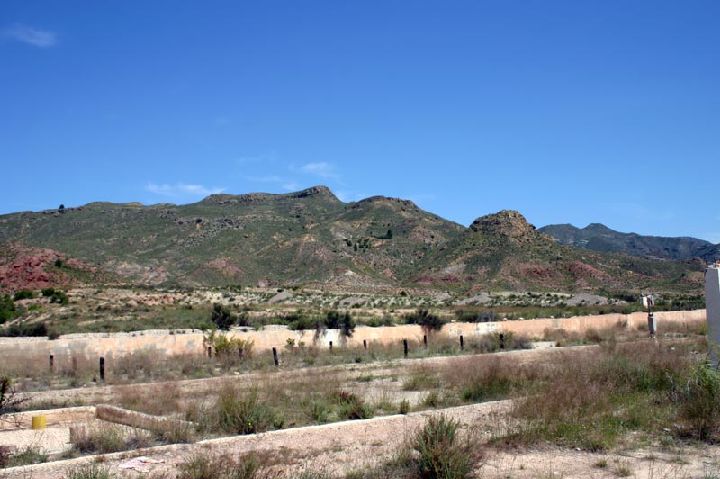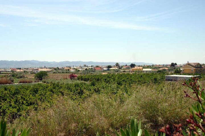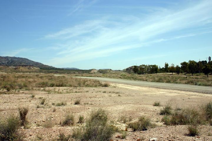 Campo de secano y al fondo autovía del mediterraneo