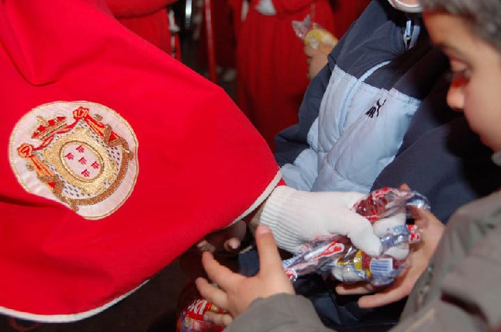 En sus primeros años esta procesión desfilaba la noche del Jueves Santo, y fue sobre el año 1689 cuando se trasladaría su desfile a la tarde del Miércoles Santo, llegando así hasta nuestros días. Hacia el año 1705 la Cofradía tomó forma en cuanto a su indumentaria y entrega de caramelos.