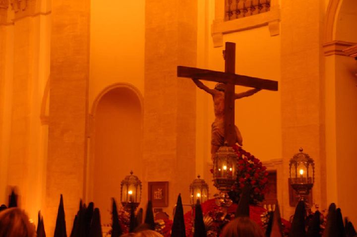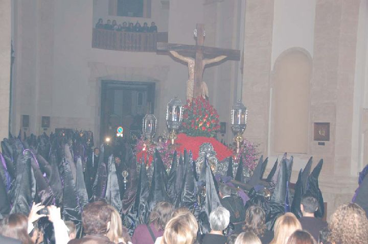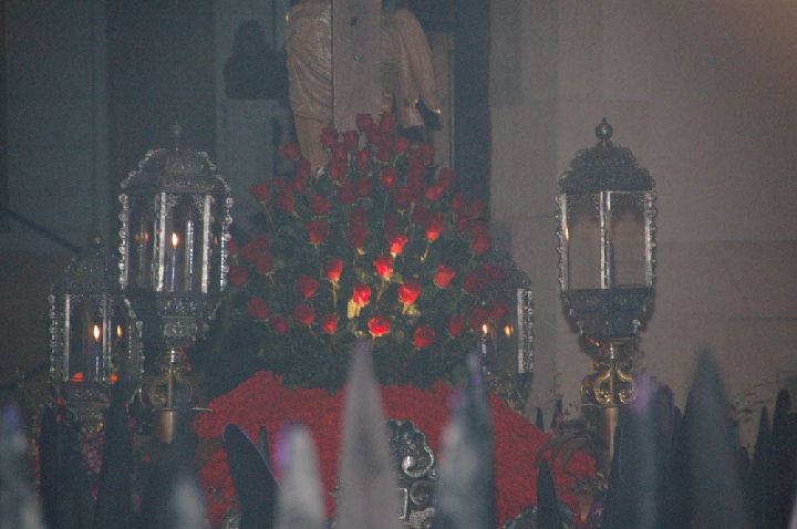 Presenciar este cortejo es emotivo realizarlo en cualquier sitio de su recorrido, no obstante el regreso a la iglesia es sobrecogedor, cuando todos los cofrades, de rodillas, esperan el paso de ésta espectacular imagen