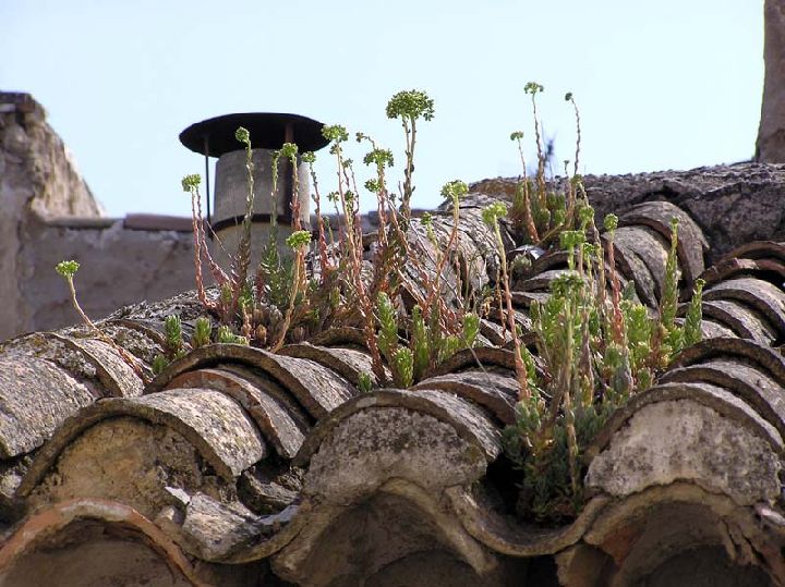 Vegetación en los viejos tejados