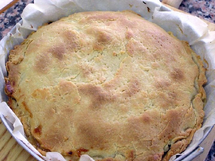 La masa de la tarta es tipo brisé, se puede hacer o comprar ya hecha. Si queremos hacerla deberemos unir a la mantequilla a punto de pomada el azúcar y la harina y mezclar suavemente, como fregando, hasta compactarla.