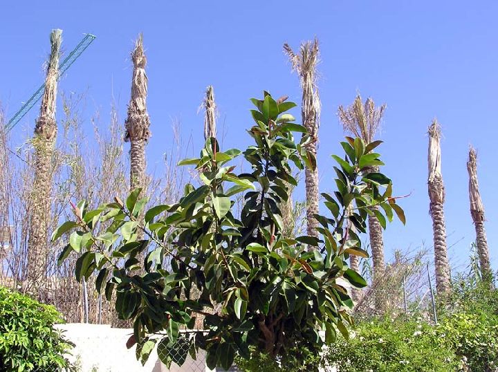 Ficus y palmeras
