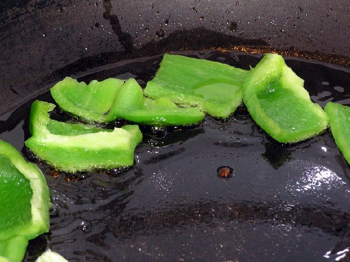 Debemos preparar separadamente el frito de tomate y el conejo. Para el frito primero rehogaremos el pimiento verde, cortado al gusto. En el mismo aceite prepararemos la salsa de tomate, tomates bien maduros pelados y cortados, a un fuego moderado hasta que la salsa esté bien hecha, añadiendo sal y un poco de azúcar para dejarlo en su sazón y acidez justos.
